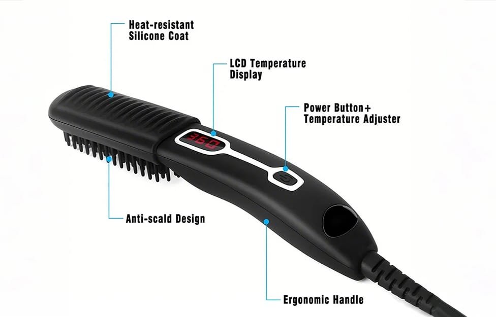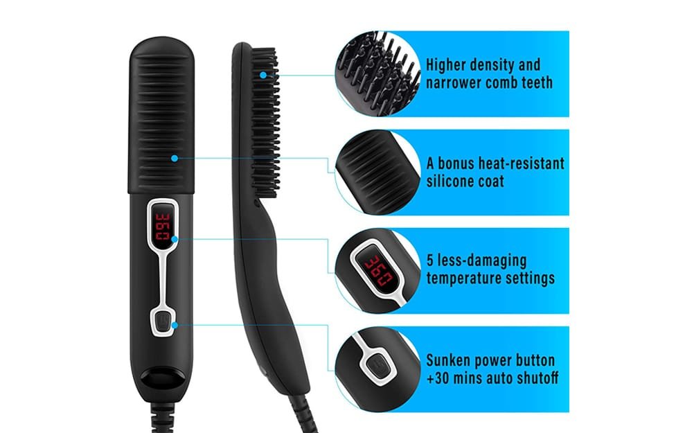 | 1.Product name: | 2-in-1 Beard and Hair Straightener Brush | 11.Hairstyle Making: | Comb/Straight/curl |