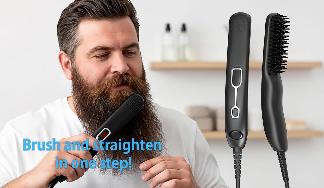 2-in-1 Beard and Hair Straightener Brush