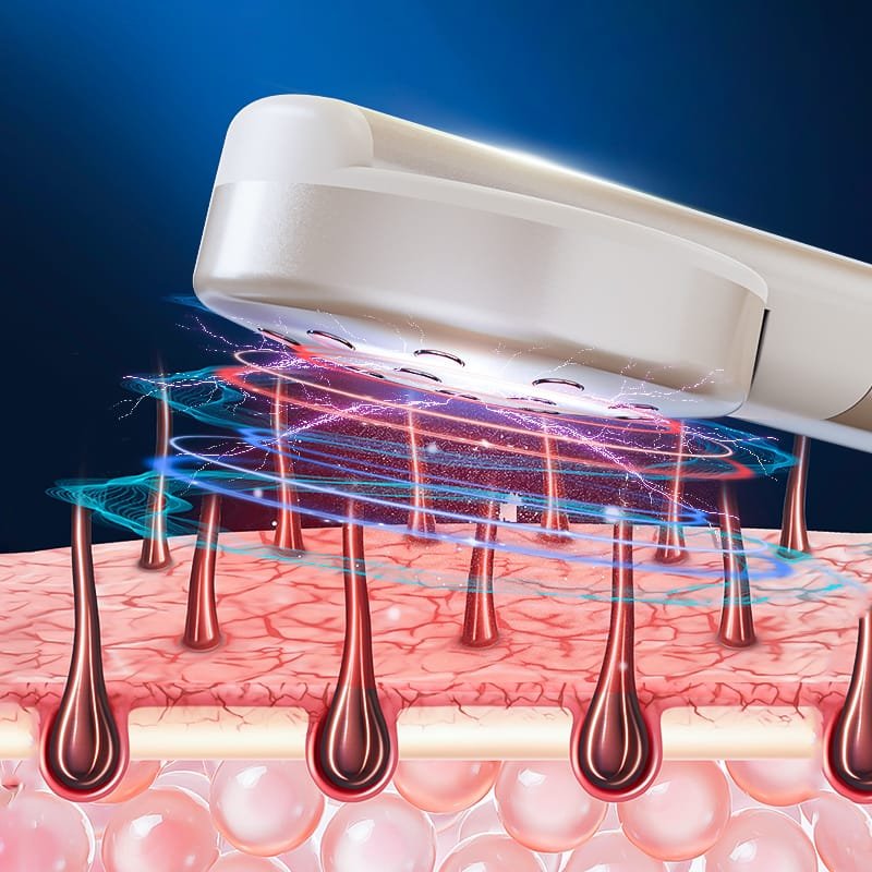 The red light penetrates the skin to improve blood circulation, providing essential nutrients for hair health and growth.