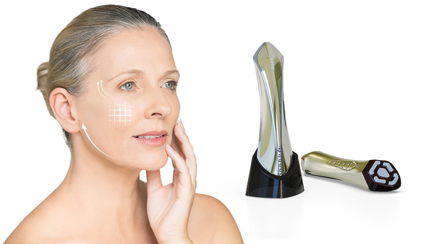 The muscle movement is stimulated by intelligent low-frequency micro-currents, improve skin loose,  firming the V-face.